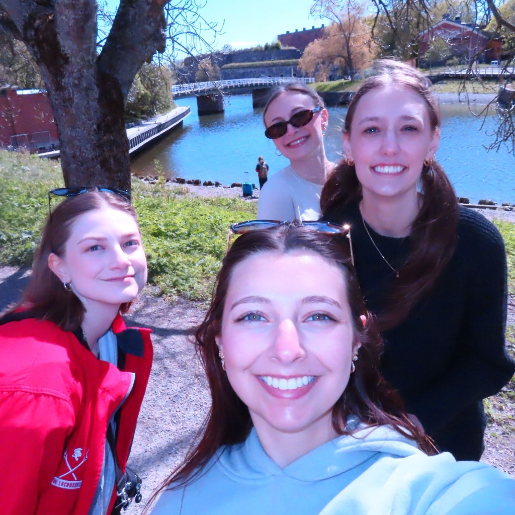 Guest writer Ava Adair. Today we all woke up and took the public transit train system to the Oodi Library in the town center. This library was unlike anything we’ve ever seen, and very diffrent from standard American public facilites. It seemed to have every practical thing in there offered to Finns for free. We had a tour of the library, learned the history behind how it was built and designed. After the library tour and some group photo taking, We split ways with the rest of the group. Our group decided to wonder around the central town area near the train station and major shopping malls. We visited a real grocery store and it was so clean and well designed (think of a very nice whole foods but better). We picked out some fun snacks to try and made our way to a big 4 level womens shopping center. We all browsed, found some things then decided to check out the Stockmans next door. It was huge and seemed to have every major brand and some European ones as well. We continued our day with lunch at roberts coffee cafe, this is a big chain here and can be similar to a starbucks. After this, our group decided it was the perfect day to take the ferry over to Suomenlinna fortress. While on the 15 min ferry ride, there were many curious seagulls that were taunting us and others, it was funny and a little scary in the moment. When we got to the island it was perfect weather, not to hot or cold with a breeze. We started walking around with no plan, and came across a couple diffrent stores. We came across a big hill that gave us the perfect lookout over the sea and island. We decided to take a break and grab some drinks and a little snack at the local cafe on the island and relax for a bit. After we took the ferry back to Helsinki, sitting in the covered area this time. It was around dinnertime when we arrived back, we found a great tuscan style resturant to eat our final dinner at in Helsinki. We ended this amazing day with a sauna visit in our hotel.